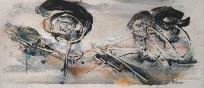 Dans un second temps, je modifie et complète l'oeuvre par des ajouts de crayon, pastel, couleur acrylique,
