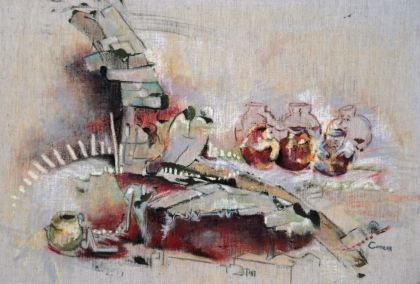 Monotype et acrylique sur toile de lin et coton et médiums mixtes - 17 po X 25 po, 2010